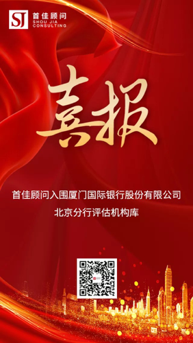 熱烈祝賀北京首佳房地產評估有限公司:成功入圍廈門國際銀行股份有限公司北京分行評估機構庫!